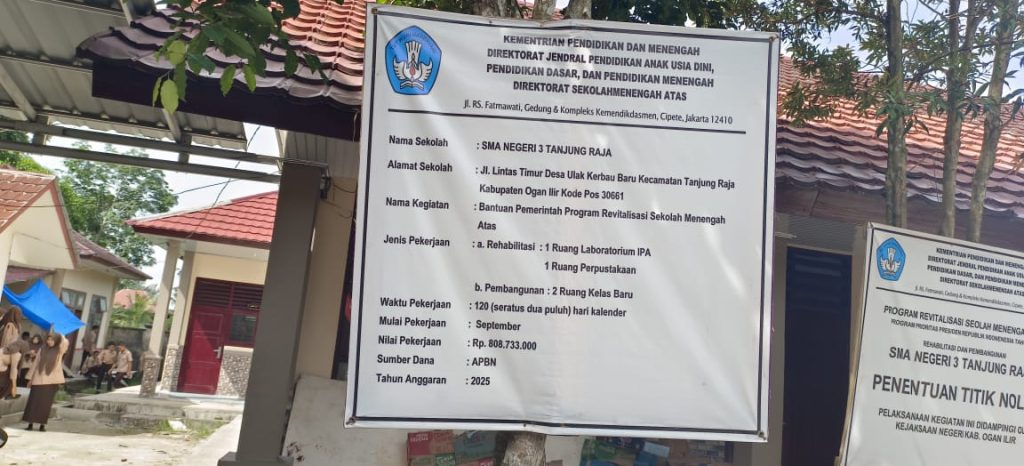 Program Revitalisasi Sekolah Mencegah Atas Negeri (SMAN ) 3 Tanjung Raja yaitu Rehab Ruang Lab IPA dan ruang perpustakaan serta dua Ruang Kelas Baru (RKB) yang menggunakan anggaran APBN Tahun 2025 sebesar Rp 808.733. 000,-,Di duga Tak sesuai RAB,